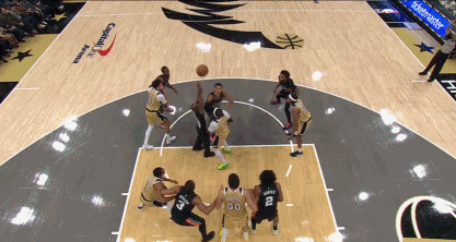在比赛期间发生了一个小插曲,在一次跳球过程中,文班亚马高高跃起之后不慎肘到了跳球裁判的面部,文班本人并未察觉,还急忙来到外线出手三分球。